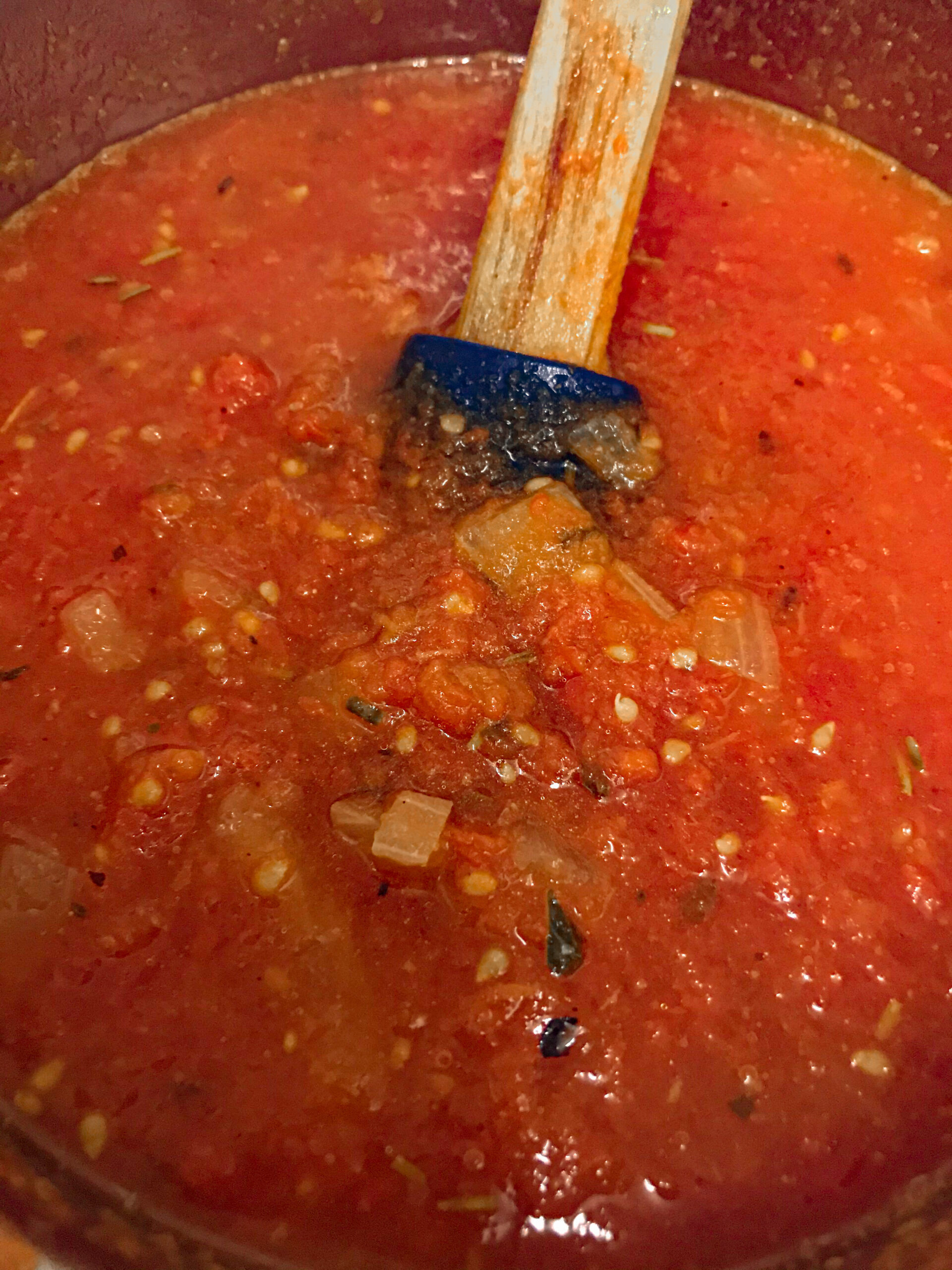 - Dès que la consistance vous plait, faites cuire à feu doux et couvrez votre sauce tomate afin qu'elle mijote tout doucement, pendant au minimum 1h