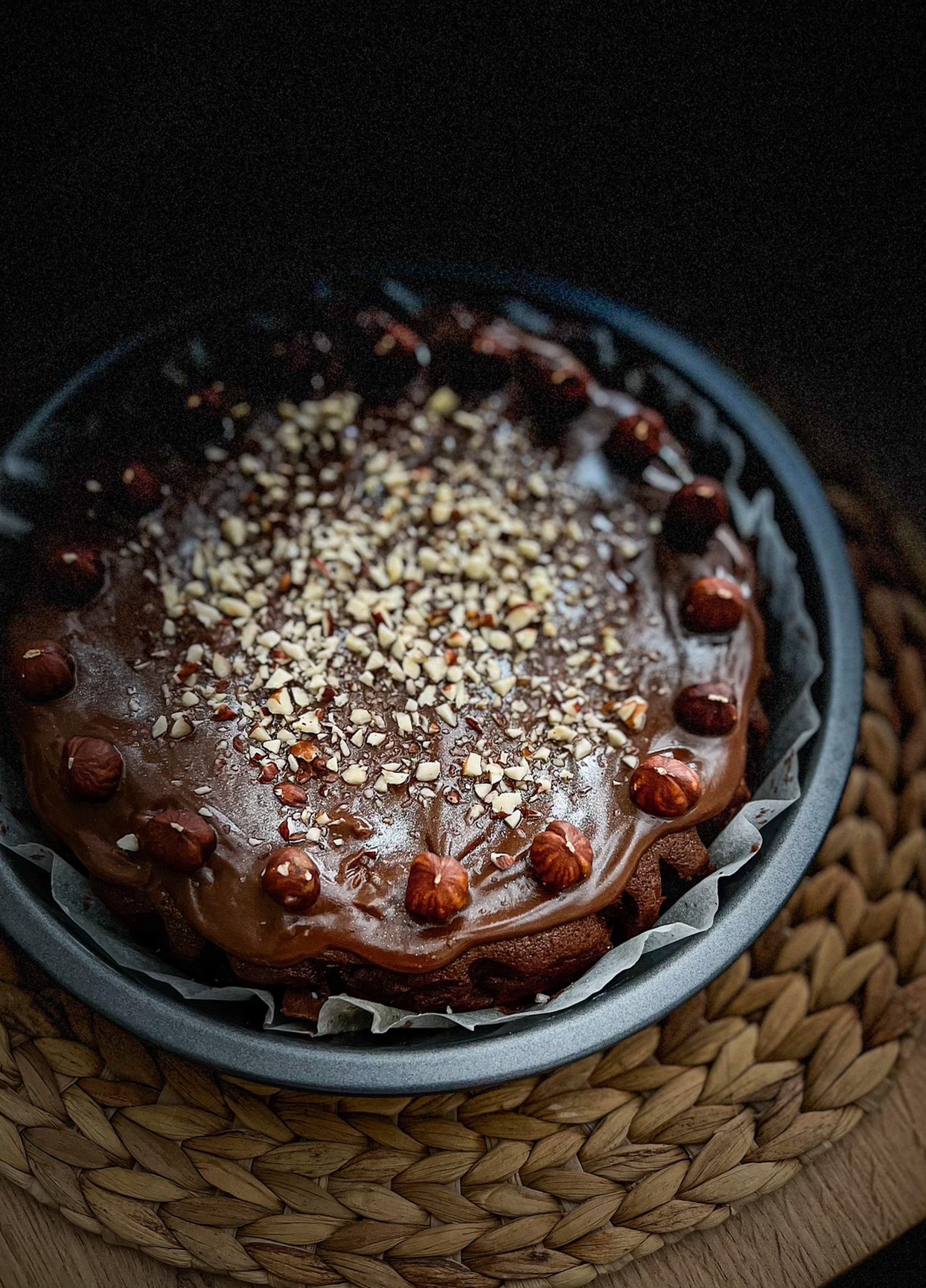Un gâteau gourmand et fondant en bouche, simple à réaliser. La petite touche gourmande ; des noisettes concassées et des noisettes entières tout autour du gâteau (c'est aussi une bonne mesure pour celui qui le découpera!)