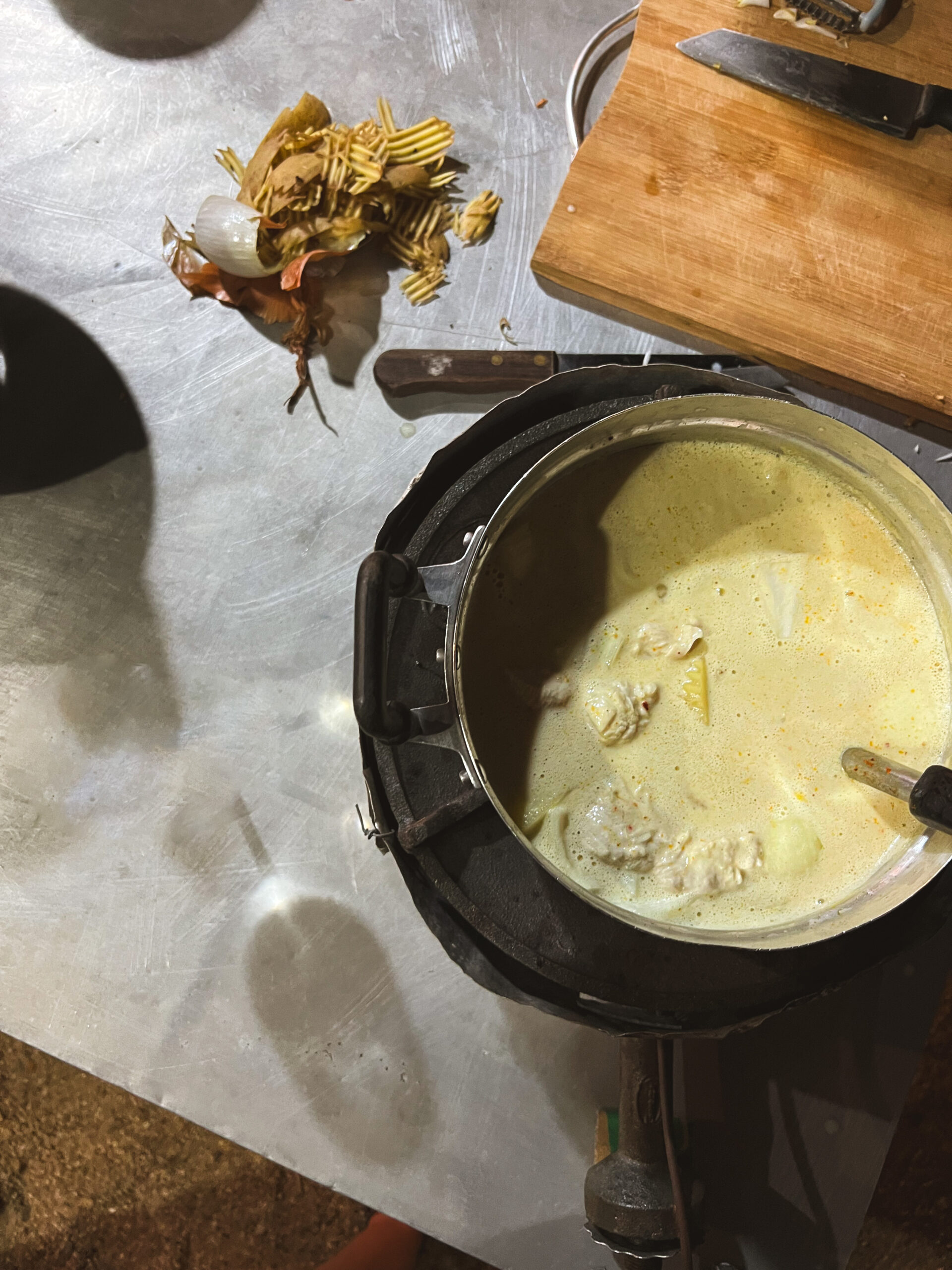 • Dans une casserole, mélangez de l'huile neutre avec la pâte à curry et faites revenir.