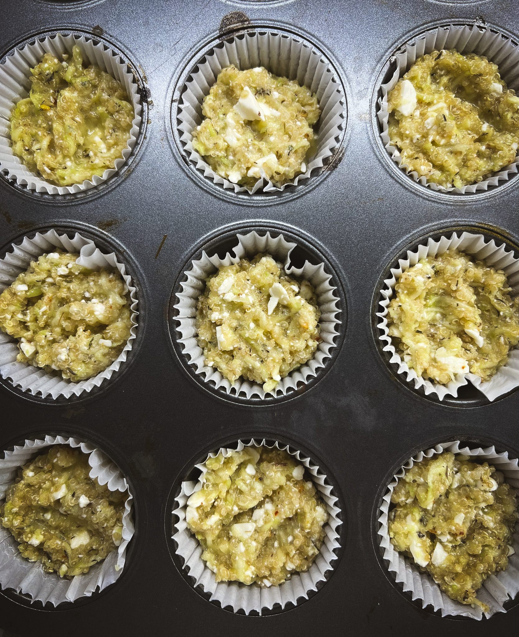 Muffins de quinoa, courgette & feta marinée