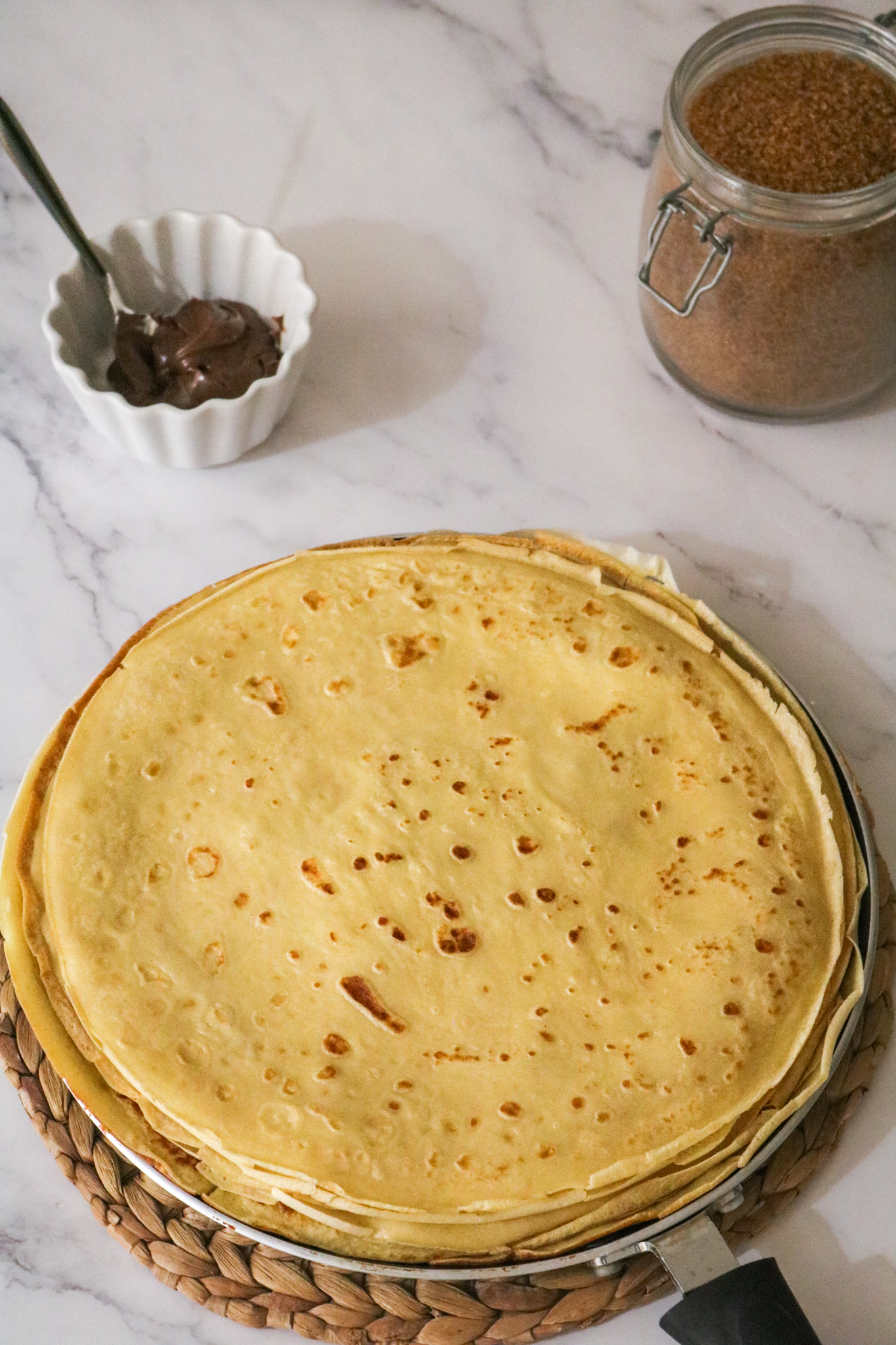 Crêpes maison servies avec Nutella ou sucre de canne