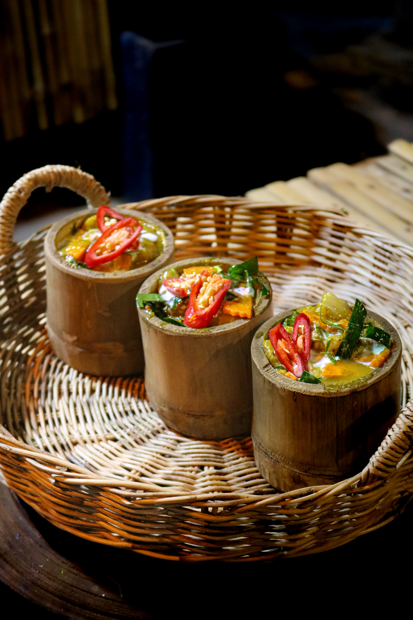 - Traditionnellement, l'Amok est servi dans une feuille de bananier pliée en forme de bol. Il peut aussi être servi dans un tube en bambou.