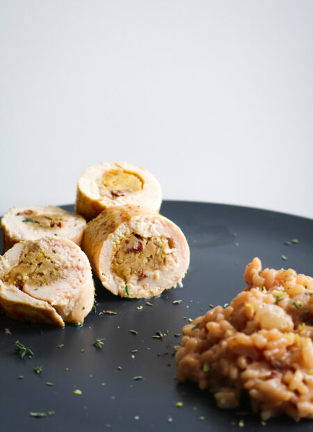 Une ballotine de poulet gourmande farcie à la châtaigne, aux herbes fraîches et au zeste de citron. Tendre et parfumée, parfaite pour un repas de fêtes/automnal.