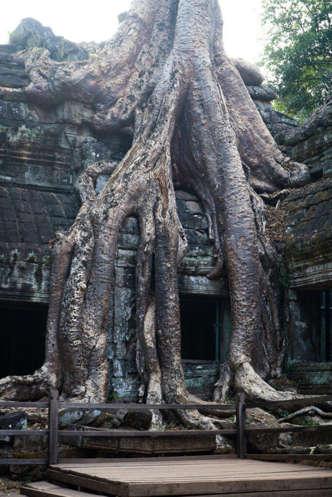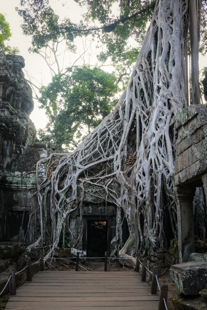 Ta Prohm : rendu célèbre par Lara Croft : Tomb Raider, envahi par les racines.