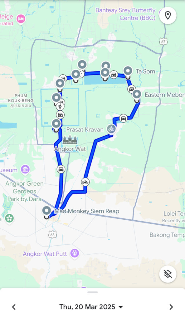 - Longueur de l’itinéraire du Grand Circuit : 40 km de Siem Reap allé-retour.
