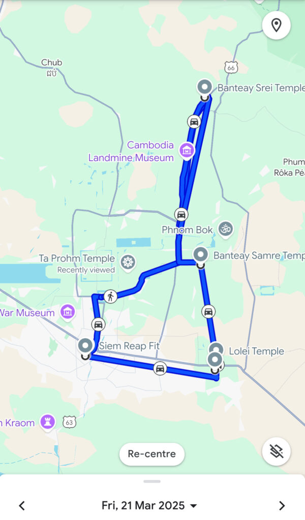 - Longueur de l’itinéraire du petit circuit : 30 km de Siem Reap allé-retour.