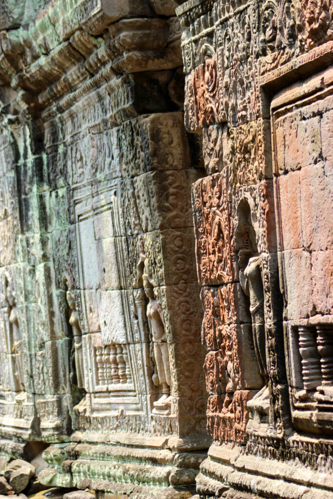 Banteay Prei : lieu très peu fréquenté, plein de charme, avec ce sentiment qu’on est vraiment sur un site archéologique, grâce à la restauration de sculptures et de parties de portes, qu’on peut voir autour du temple.