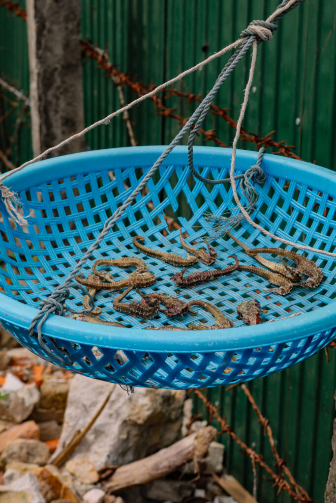 - Découvrez une pratique locale surprenante… Les hippocampes séchés, visibles à quelques endroits dans la rue principale. Très prisée par les Chinois pour la médecine traditionnelle.