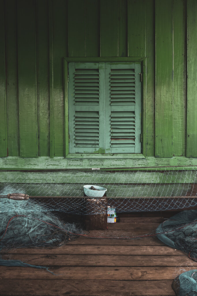 Se balader ici donne presque l’impression d’être dans un jeu vidéo, tant les décors sont atypiques : des mètres et des mètres de filets de pêche suspendus partout, posés sur les pontons, accrochés aux maisons, créant une atmosphère unique.