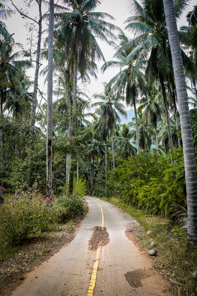 De White Sand Beach jusqu’à Haad Klong Kloi, en passant par Kai Bae et Lonely Beach. Digne d’un décor de cinéma, toujours bien entretenue, la route serpente à flanc de montagne, encerclée par une jungle profonde. Ici, on voit bien que la nature est reine et qu’elle reprend possession des lieux, en enveloppant les rambardes en bord de route. On est vraiment chanceux de pouvoir traverser cette jungle si dense, et d’en avoir ainsi un aperçu.