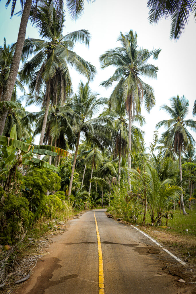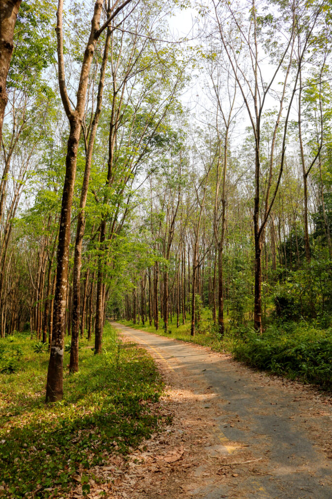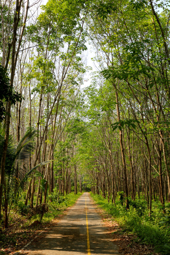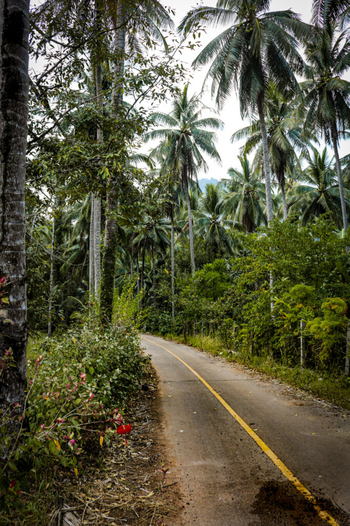 Pas d’attractions à découvrir, seulement des paysages à explorer le long de la route, avec sa forêt, ses plantations d’hévéas, ses cocoteraies, ses champs de durians, de pomélos et d’autres cultures.